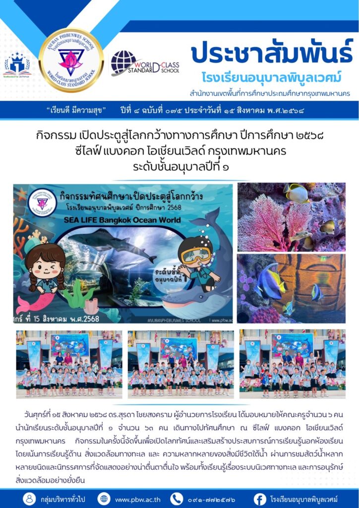 นำนักเรียนระดับชั้นอนบาลปีที่ ๑ จำนวน ๖๓ คน เดินทางไปทัศนศึกษา ณ ซีไลฟ์ แบงคอก โอเชียนเวิลด์