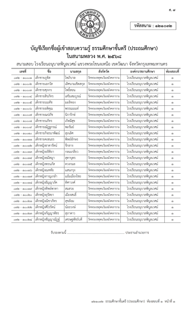 รายชื่อสอบธรรมศึกษาชั้นเอก