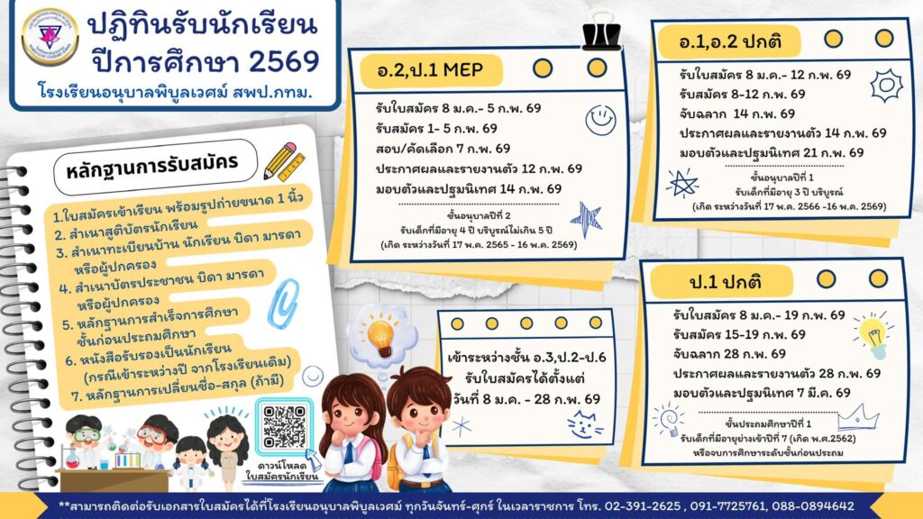 โรงเรียนอนุบาลพิบูลเวศม์ เปิดรับสมัครนักเรียนใหม่ ประจำปีการศึกษา 2569 แล้วค่ะ ![]()